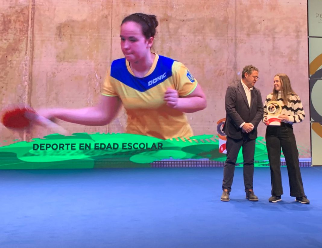 La palista recibió el premio en la especialidad «Deporte en Edad Escolar» por su magnífica trayectoria en 2022 en el Tenis de Mesa.