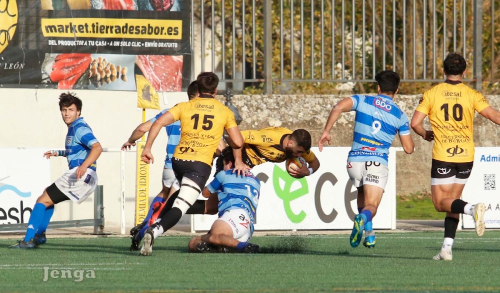 Sufrida victoria del Recoletas Burgos Caja Rural ante el conjunto madrileño del Complutense Cisneros. El partido fue mucho más complicado de lo que puede aparentar el marcador final, ya que los madrileños plantearon un partido de máxima intensidad ante los burgaleses. Al descanso se llegaba con ventaja burgalesa por 21.16, pero en la segunda parte, pese a que la iniciativa fue del Recoletas, hubo momentos de mucha igualdad con un 28-26 que dejaba abierta la posible remontada madrileña. Menos mal que los ensayos de Iñaki Mateu y de Tani Bay resolvieron el partido a favor de Recoletas Burgos Caja Rural, que anota una victoria importante para seguir en la cabeza de la tabla.