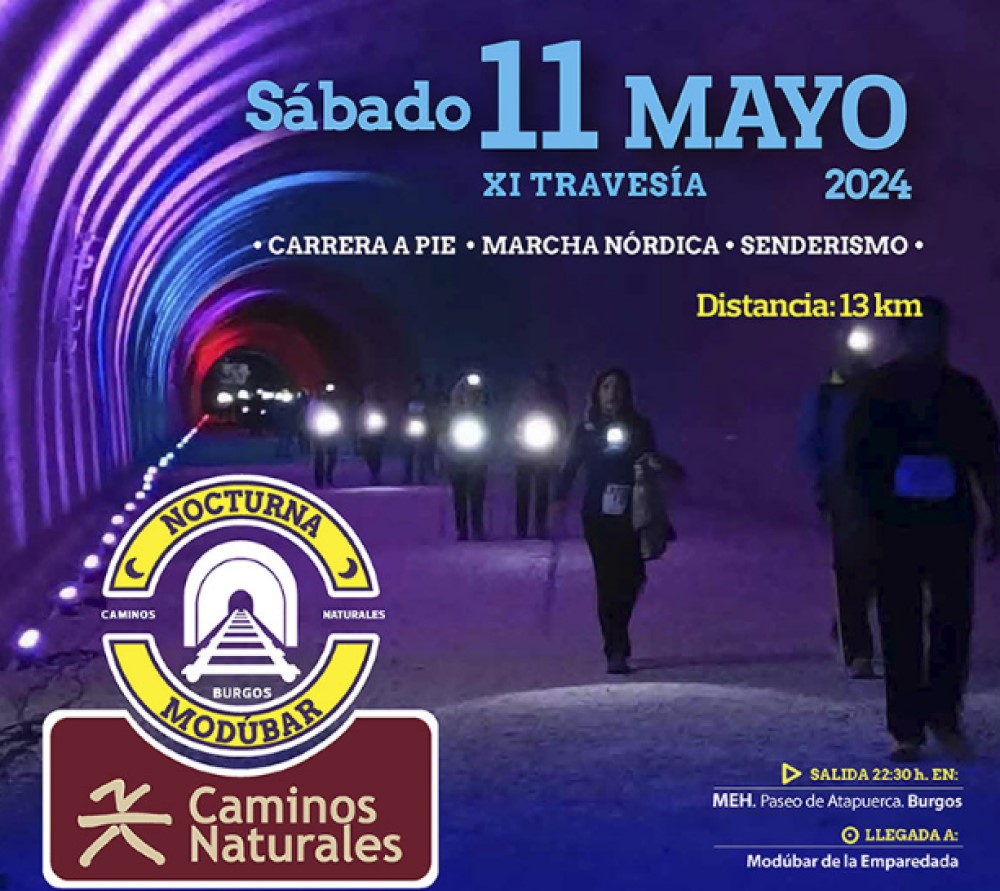 La XI Nocturna de Modúbar «Caminos Naturales», cuyo recorrido volverá a unir Burgos capital y Modúbar de la Emparedada a través del Camino Natural Santander-Mediterráneo, se celebrará el 11 de mayo y volverá a formar parte del Circuito de Travesías Nocturnas de Diputación de Burgos.