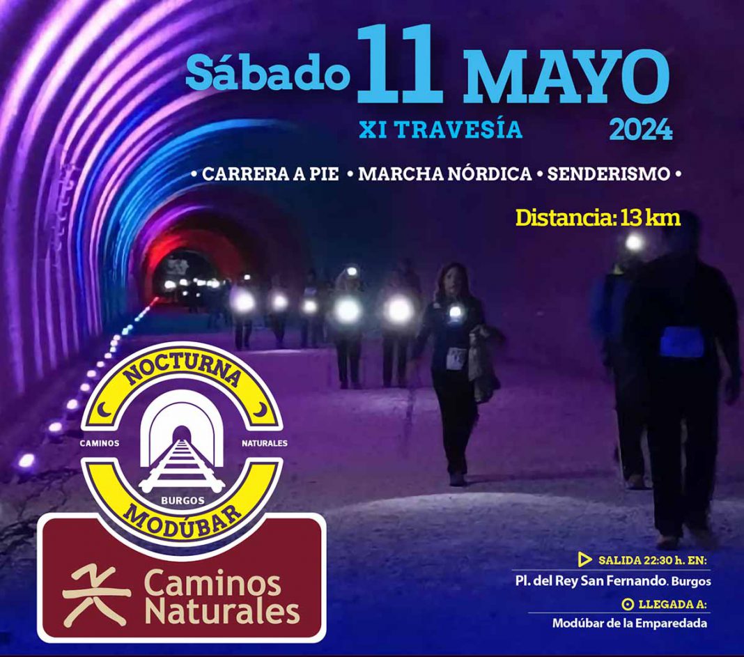 La XI Nocturna de Modúbar – ‘Caminos Naturales’ se celebrará el próximo sábado, 11 de mayo, sobre los 13 kilómetros de recorrido que unen Burgos y Modúbar de la Emparedada.