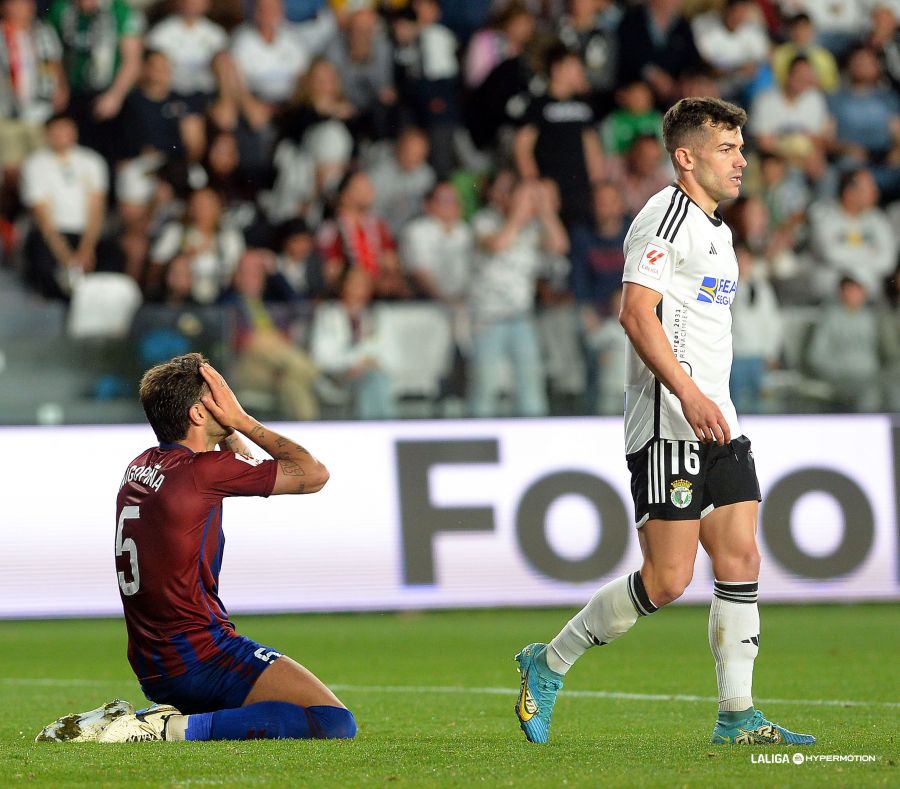 Incidencias: Partido de la Jornada 39 de la Segunda División Liga HyperMotion disputado en el Estadio El Plantío ante 10.468 espectadores, entre ellos alrededor de una cincuentena de seguidores del Eldense. Burgos CF y CD Eldense saltaron al campo entre un pasillo realizado por jugadores de los equipos de La Liga Genuine que este fin de semana disputan en la Ciudad Deportiva de Castañares la tercera fase de la competición. Además, sonó por vez primera por la megafonía del estadio el himno del Real Burgos CF tras pagar el Burgos CF a la SGAE por los derechos.