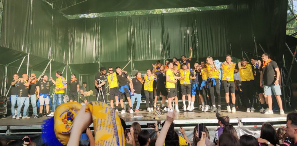 Ni en Cangas, donde cayó en la final pero fue repescado tras la desaparición del Portland San Antonio; ni hace cuatro temporadas por culpa de la pandemia, la entidad amarilla pudo celebrar un ascenso con los honores que merece.