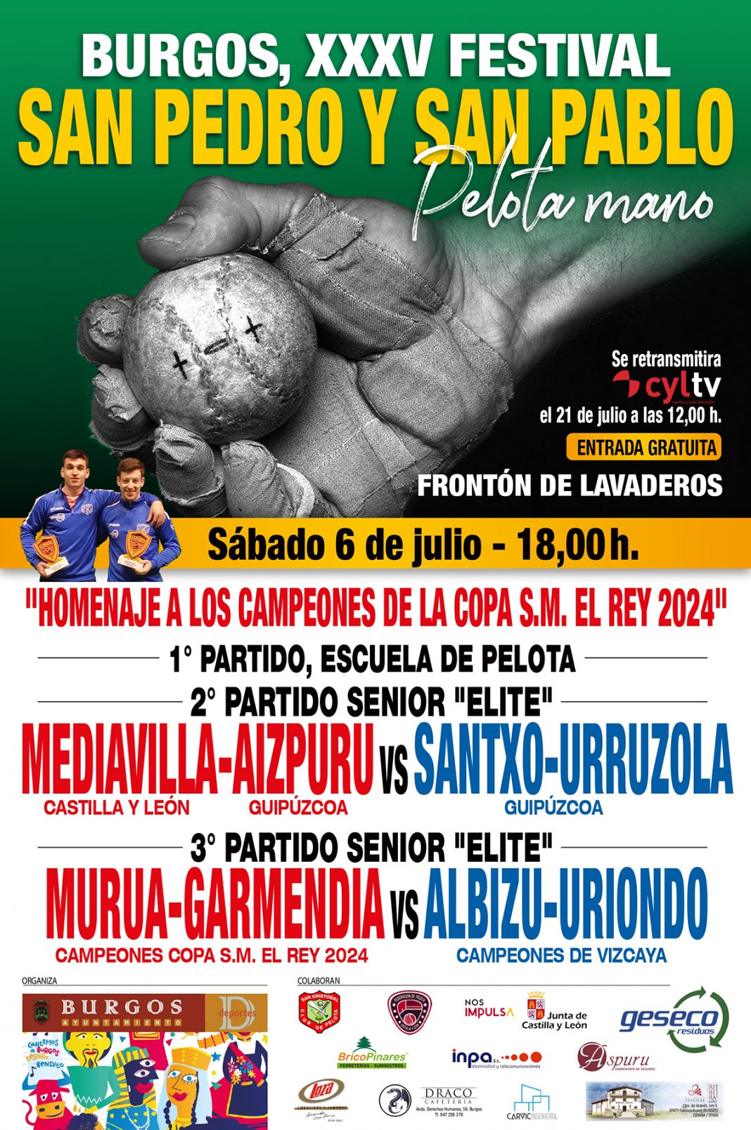 Este próximo sábado 6 de julio, el Frontón de Lavaderos en Burgos se convertirá en el centro de atención de la pelota a mano con la celebración del XXXV Festival de San Pedro y San Pablo 2024.