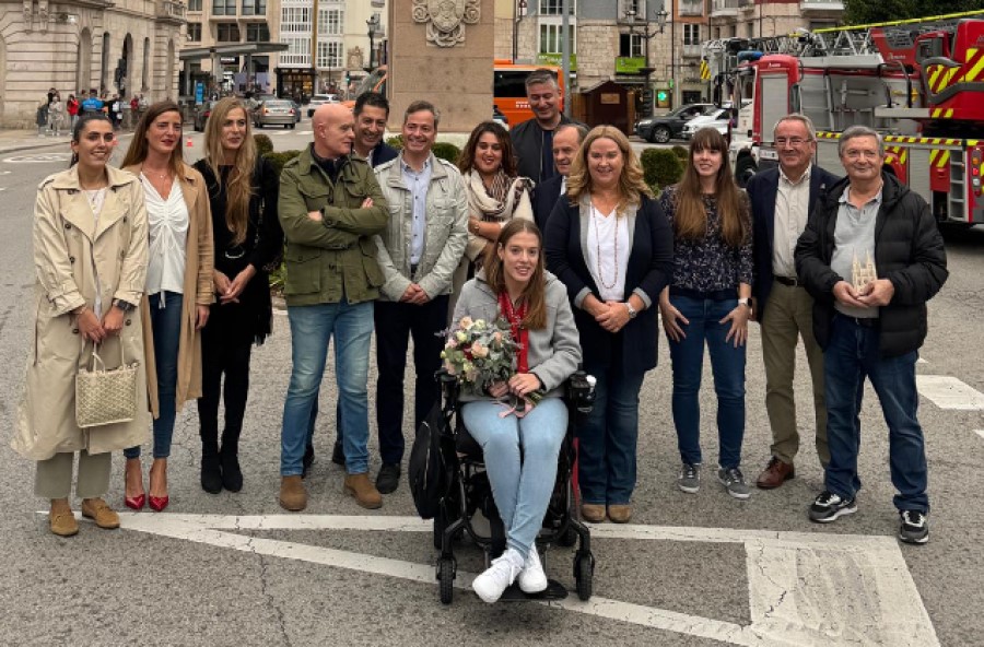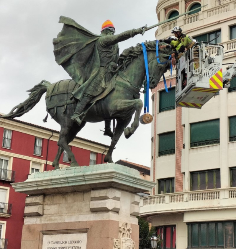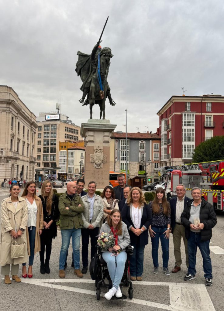 Un homenaje muy peculiar que tuvo lugar en la Plaza del Cid, donde a la estatua del insigne personaje, le fueron colocadas unas gafas de natación, un gorro con los colores de la bandera española y una réplica de las tres medallas conseguidas por la nadadora en los últimos Juegos Paralímpicos de Paris, todos los elementos elaborados por el artista burgalés Cristino Díez.