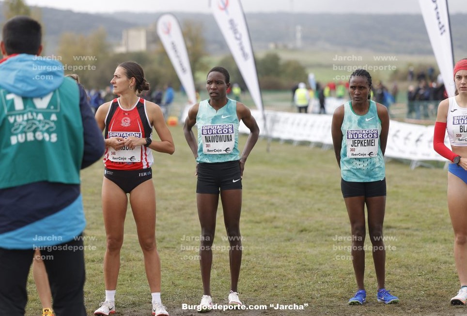 La climatología finalmente respetó bastante a los miles de aguerridos participantes y fueron las mujeres quienes protagonizaron la primera de las carreras reinas, las absolutas; sobre la verde alfombra burgalesa intercalada por un gran charco de agua, las tres favoritas se distanciaron en cabeza nada más sonar el pistoletazo, la burundesa Francine Niyomukunzi, Jepkemei y la keniata Grace Nawowuna, apareciendo en lontananza la avanzadilla del grupo perseguidor, con Carolina Robles y la portuguesa Mariana Machado al frente de las operaciones, seguidas muy de cerca por María Forero.