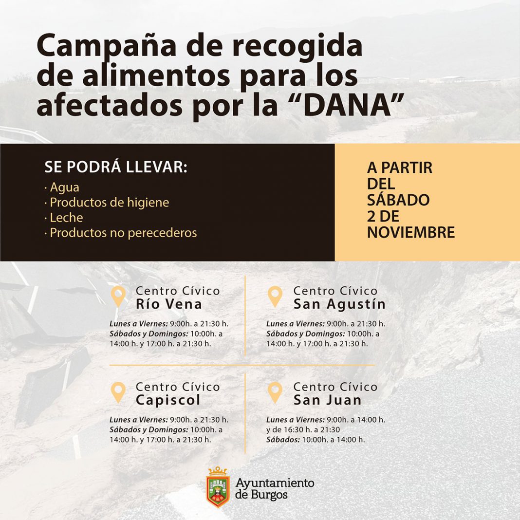 Arranca este sábado y se desarrollará en los centros cívicos de San Juan, Capiscol, Río Vena y San Agustín, donde los burgaleses podrán llevar agua, leche, productos de higiene y no perecederos