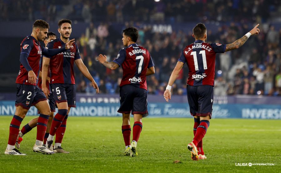 Levante UD: Andrés Fernández, Andrés García, Elgezabal, Dela, Marcos Navarro (Pampín, min. 59); Algobia (Oriol Rey, min. 59), Kochorashvili, Pablo Martínez (Lozano, min. 74); Iván Romero, Brugui (Carlos Álvarez, min. 59) y Morales (Espí, min. 74).