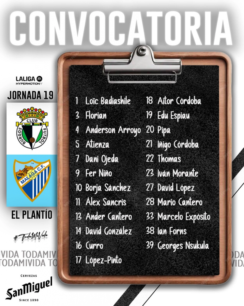 El Burgos CF afronta su segundo partido consecutivo en El Plantío ante un Málaga CF que no atraviesa una buena racha de resultados, donde suma 3 puntos de 15 posibles. El equipo andaluz también destaca por ser el que mayor número de empates encadena, un total de 11 en lo que llevamos de temporada, el último de ellos fue la pasada jornada ante el Almería, que terminó 1-1.