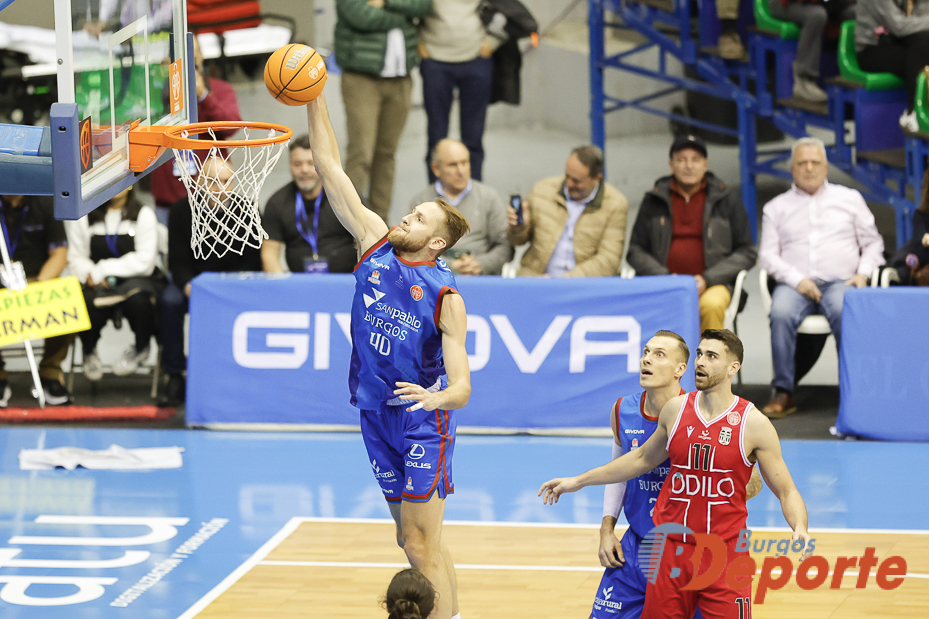 Silbö San Pablo Burgos suma su decimocuarto triunfo y espera ya impaciente su próximo duelo en liga frente a Estudiantes. Encuentro que va a dejar a un sólo equipo en lo alto de la tabla. Pero para ello había que solventar el compromiso de hoy y ambos cumplieron. Los de Savignani tuvieron un buen tramo final en el primer cuarto que les permitió coger distancias, pero unos malos minutos en el segundo dejó el encuentro más equilibrado. Tras el paso por vestuarios, los locales jugaron un excelso tercer cuarto en ataque con 37 puntos que les dejó el duelo encarrilado. En dinámica ascendente, los de Savignani apenas aflojaron el ritmo en el último tramo para sumar 112 puntos. Volvió Dani Díez al juego local y lo hizo por la puerta grande, anotando 18 puntos, que le sirvió para ser el tercer máximo anotador de los suyos. Le superaron Cuevas con 19 puntos y Corbalán con 20, que fueron los mejores del duelo con 26 y 30 de valoración, volviendo a ser el argentino el MVP. Al festín anotador se sumaron Fischer y Gudmundsson, con 15 y 12 puntos cada uno. Por parte de Odilo FC Cartagena CB, el mejor fue Cabrera con 18 de valoración, con 9 puntos y 5 asistencias en un equipo donde sus máximos anotadores fueron Jordá y Hermanson con 17 y 11 puntos.
