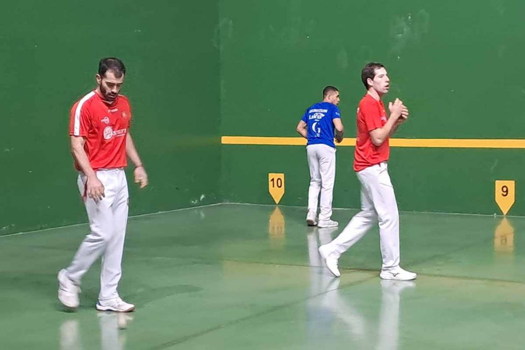 En mano parejas, la contienda fue aún más emocionante, con alternativas para ambos equipos y grandes jugadas. Carregal-Uriondo, a pesar de su buen hacer, no pudieron imponerse a Igoa-Arbizu, quienes también se llevaron el partido en el tercer juego. LoS parciales de 10-07; 09-10 y 3-5.
