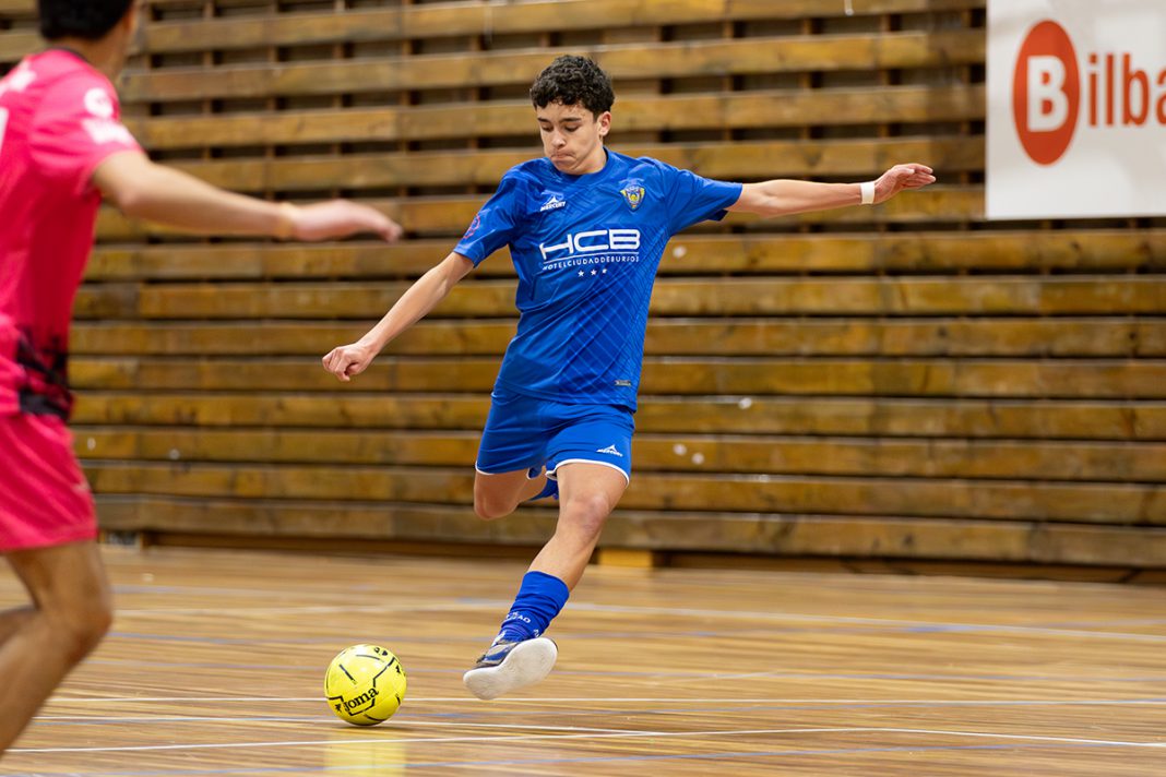 Pronto marcaba el conjunto riojano en el minuto 5 en un partido lleno de intensidad ya que lo reducido de la pista así lo requería. La presión constante del equipo local fue la nota predominante del partido de la que era muy complicado salir con el balón controlado. Dos ocasiones claras del HCB en esta primera parte que no son aprovechadas para empatar el encuentro y cuando parecía que el descanso estaba encima en un saque de banda en un lanzamiento exterior Ruiz hacía el 2-0 para irse al descanso los dos equipos.