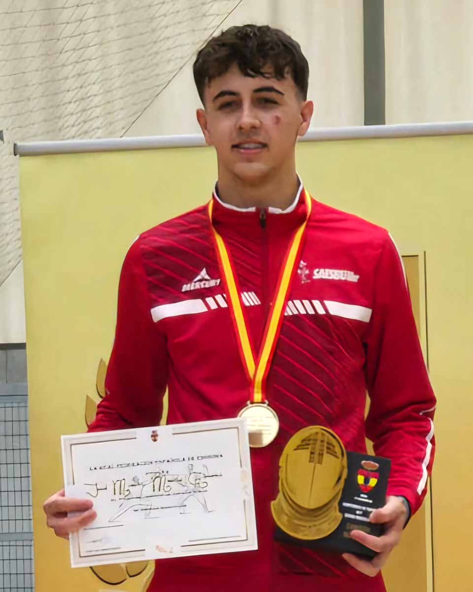 Su compañero de club Diego López era su rival. Diego conseguía hacer pleno de victorias pasando al tablón de eliminación directa con el número 1 ganando todos sus encuentros de forma brillante y con ventaja en el marcador hasta llegar a la final. En la pista número 1 del torneo se disputaba la final SAESBU, dos tiradores del club burgalés disputando el título nacional sub23 algo insólito en la historia del club.