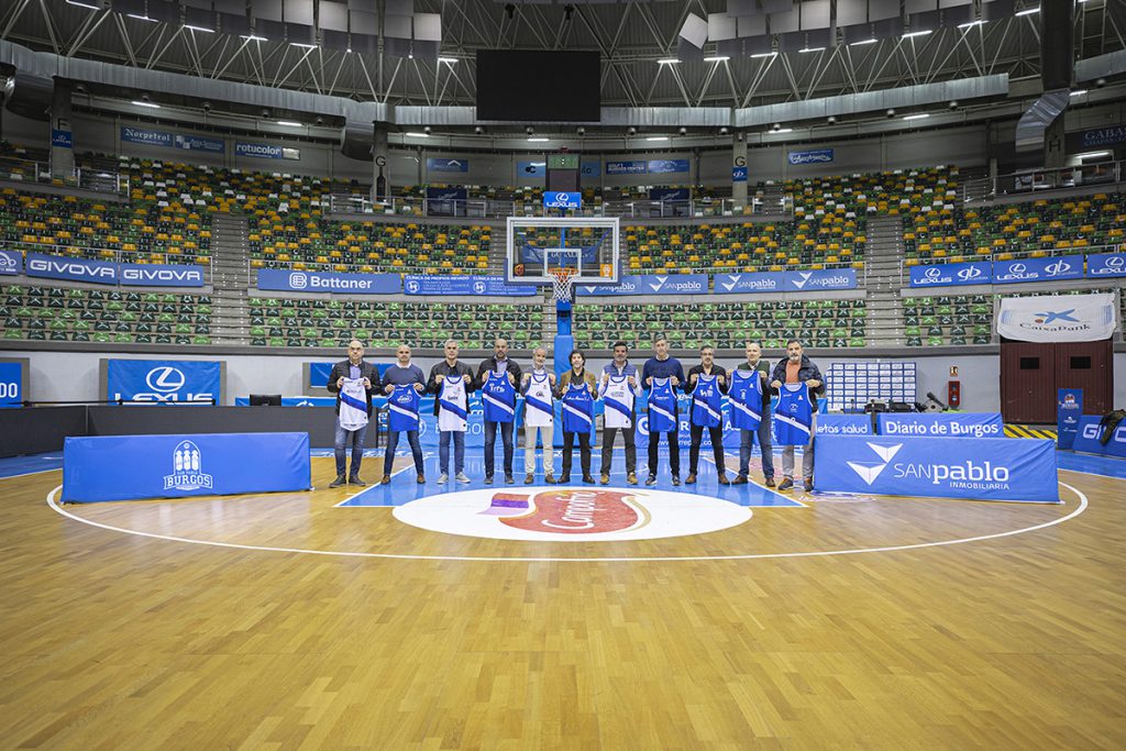 Además de posar junto a cada uno de los equipos a los que dan apoyo y ponen nombre, los representantes de las empresas patrocinadoras de la cantera del San Pablo Burgos compartieron una fotografía grupal en la cancha del Coliseum.