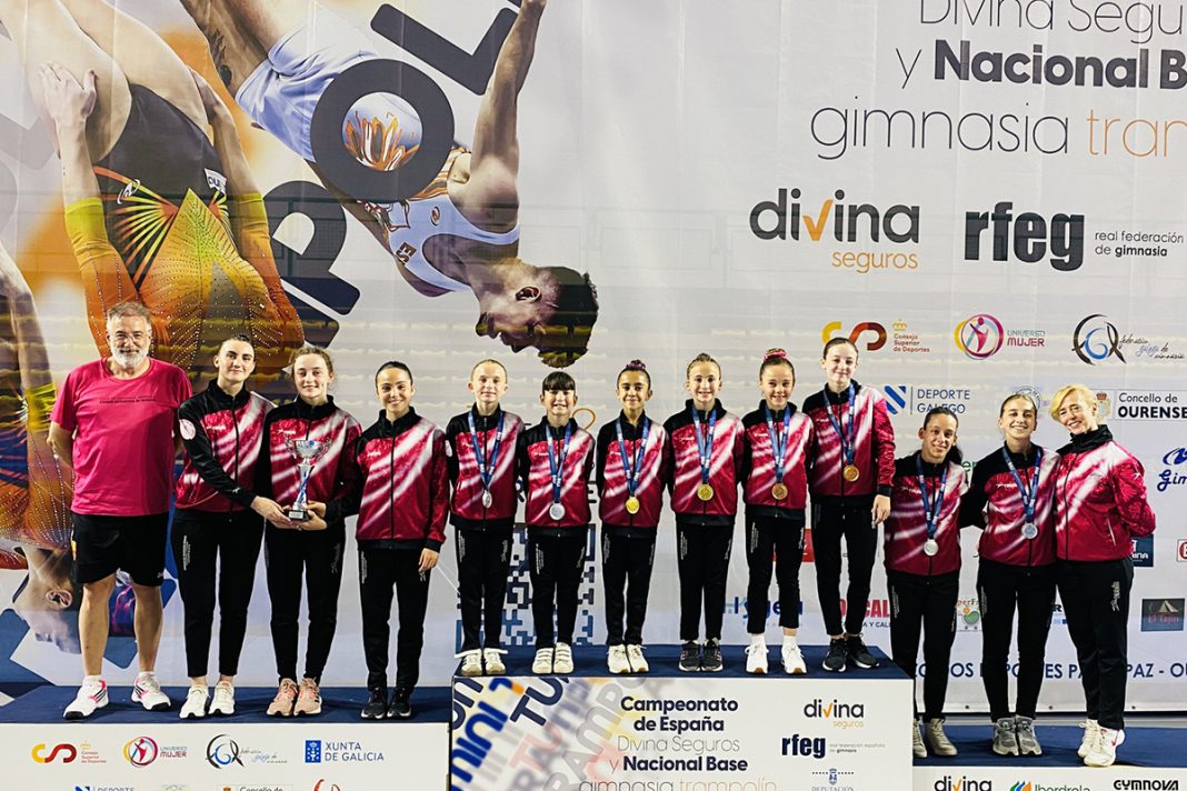El equipo burgalés ganó 14 medallas individuales y 2 trofeos por equipos, formados por 6 gimnastas cada uno, en el Campeonato de España y Nacional de Base de Gimnasia Trampolín