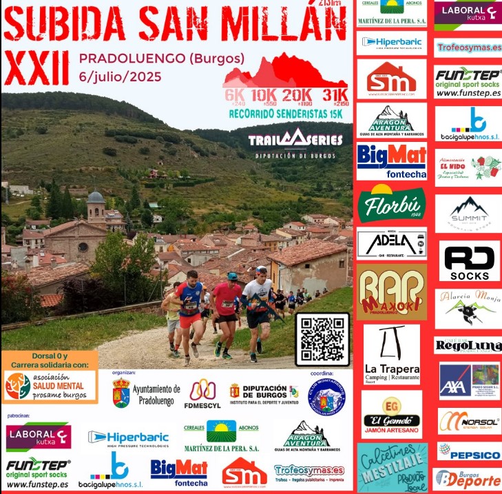 Se establecen 4 recorridos de 6, 10,20 y 31 kilómetros, así como un recorrido especial para senderistas de 15 kilómetros, lo que convierte a Pradoluengo el 6 de julio en el epicentro para los aficionados a las carreras de montaña, ya que hay pruebas para chicos y grandes, en categorías femenina y masculina, aunque teniendo como referencia la prueba absoluta de los 31 kilómetros que cubre la distancia entre la localidad y el Pico San Millán, con salida y llegada en la Plaza Mayor de Pradoluengo, al igual que el resto de las pruebas.