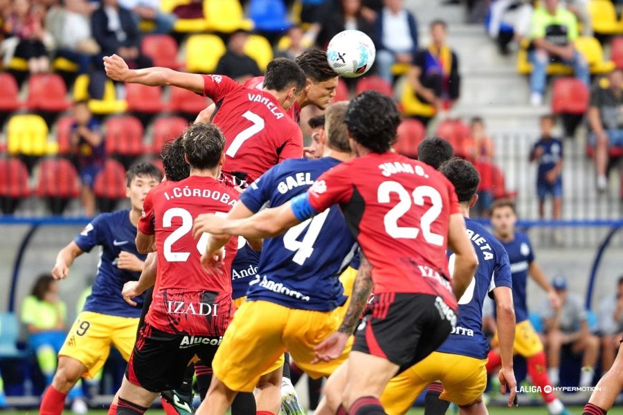 El encuentro comenzó con dominio del Andorra. En el minuto 4, un centro de Marc Domènech por la derecha lo remató Kim Min-su en el punto de penalti y Nikic rechazó evitando el peligro. Y cinco minutos después, el extremo coreano se volvió a marchar de Hugo Novoa y su disparo cruzado salió desviado. Las ocasione se sucedían y a los 17 minutos, otra vez Min-su se quedó solo en una jugada de pizarra y el portero Nikic envió a córner de forma providencial.