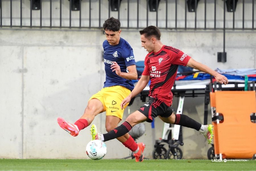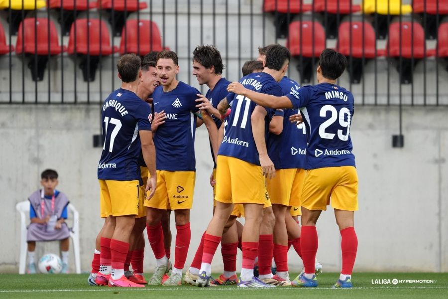 FC Andorra: ‘Yaako’; Carrique (Uzkudun, m. 83), ‘Bomba’, Gael Alonso, Martí Vilà; Sergio Molina, Dani Villahermosa (Álvaro Martín, m. 64), Marc Domènech (Jastin García, m. 54); Olabarrieta, Min-su y ‘Lauti’ De León.