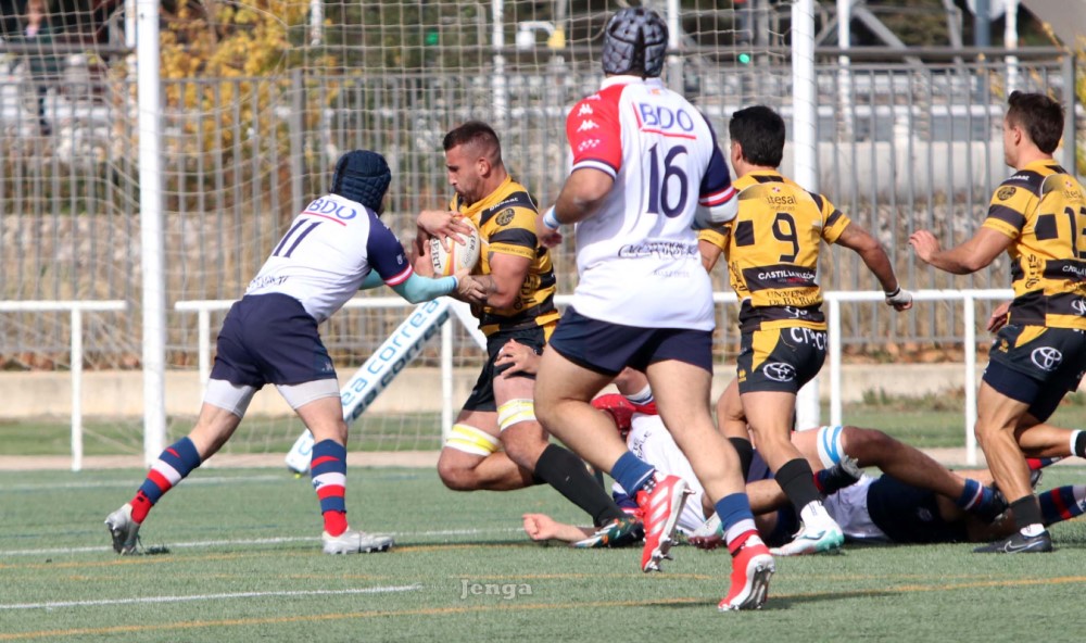 Pese al dominio abrumador, el equipo de Burgos no lograba conectar con jugadas de ataque claras, tanto es así que Liceo Francés logró obtener ventaja en varias melés. Hasta el minuto 27, el equipo del barrio de Hortaleza no pisó la línea de 22 de Burgos.