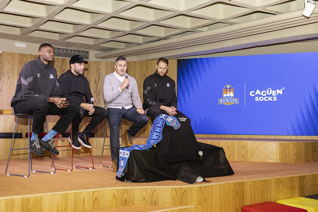 Cagüen Socks y el San Pablo Burgos han presentado este jueves en el Edificio Nexo de Fundación Caja de Burgos el convenio de colaboración por el que la marca y el club lanzarán una edición especial de calcetines para Navidad, además de convertirse en el proveedor oficial de calcetines de la cantera. En la rueda de prensa de presentación del acuerdo, han estado presentes el CEO de Cagüen Socks, Rafael Rodríguez; el director deportivo y gerente del San Pablo Burgos, Albano Martínez; y los jugadores del Recoletas Salud San Pablo Burgos, Yannick Nzosa y Luke Fischer.