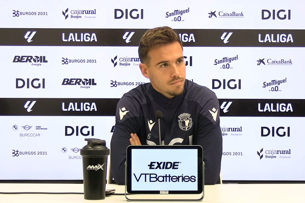El defensa del Burgos CF habla en la rueda de prensa previa al partido frente al Racing de Santander