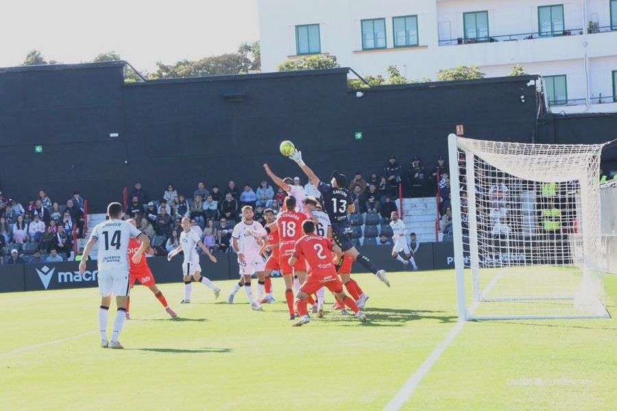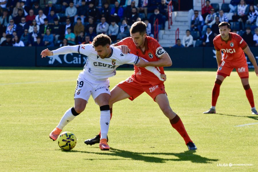 En los minutos finales el Burgos apretó y tuvo una oportunidad muy clara en el lanzamiento de un córner que remató Mario González directo al travesaño. El balón rebotó en un defensa ceutí y golpeó en el palo.