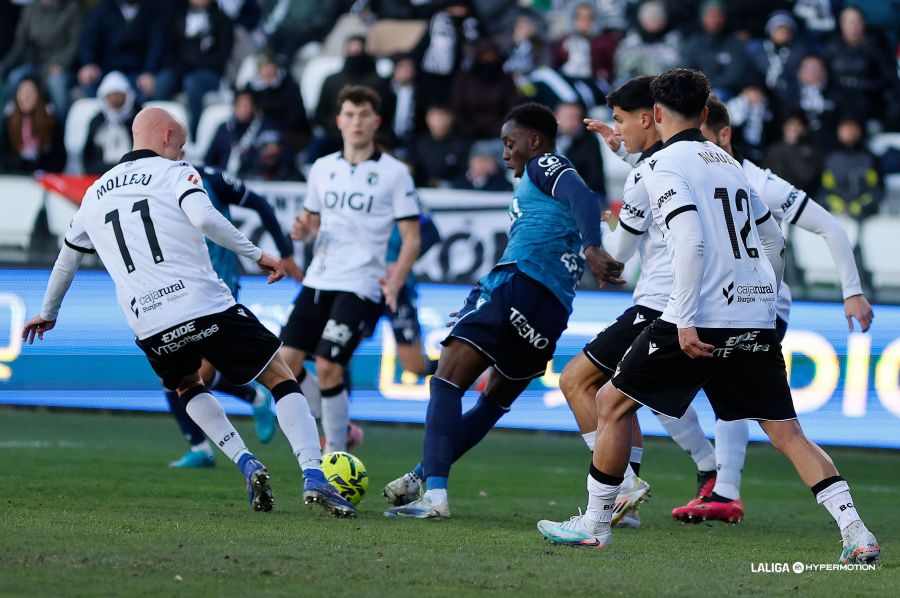Con el 0-1, fue momento de remar para un conjunto burgalés que no bajó nunca los brazos y no dudó en estirar líneas y buscar el empate. Florián Miguel tuvo un remate de cabeza que se marchó alto, Fer Niño disparó sin ángulo y el balón se paseó por la portería de Víctor Aznar sin rematador, David González trenzó una gran jugada combinativa y su disparo dirección a gol lo despejó un defensa cadista in extremis.