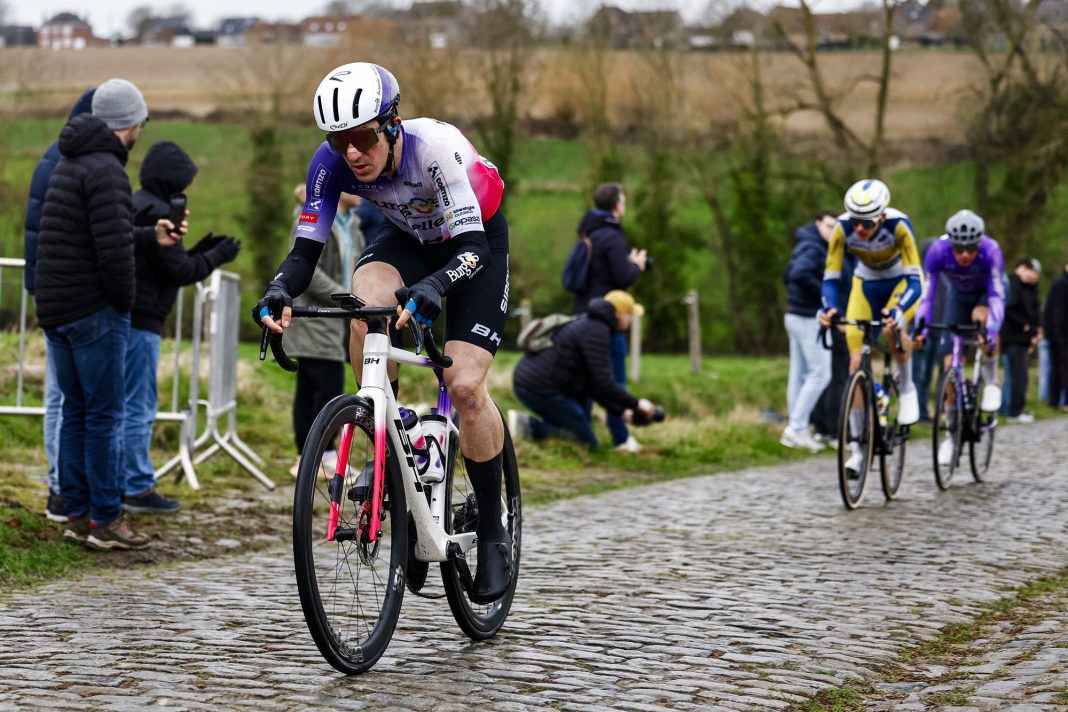La primera participación del Burgos Burpellet BH en una de las grandes clásicas belgas del UCI WorldTour se saldó de forma muy positiva. El arranque del denominado ‘Opening Weekend’ con el Omloop Nieuwsblad contó con un ciclista morado al frente de la carrera durante más de 100 kilómetros. Los burgaleses se lanzaron al ataque desde que se dio el banderazo de salida en Gante, siendo Vojtech Kmínek el primero en buscar la fuga. Sin embargo, fue su compañero Clément Alleno quien logró marcharse en cabeza junto a otros cuatro ciclistas en la parte inicial de la carrera.