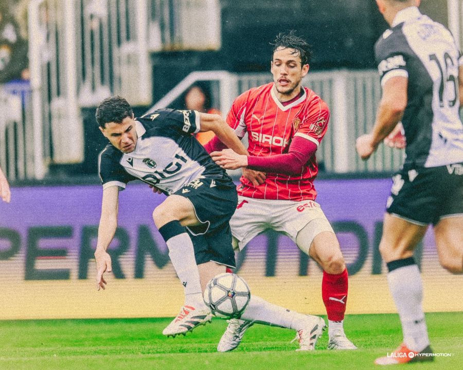 La segunda mitad fue distinta. El conjunto blanquinegro presionó más pero dejó más espacios a un equipo asturiano que también generaba peligro y que no renunciaba a nada. Fer Niño estuvo a punto de hacer el primer gol con un gran remate acrobático que Yáñez sacó in extremis en el minuto 49. El Sporting respondió poco después con un potente centro al área de Pablo Vázquez que terminó impactando en el poste.